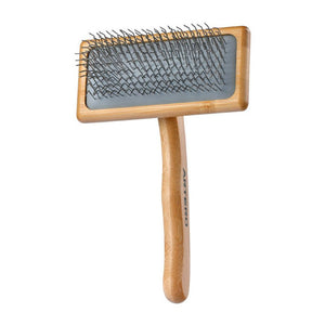 Silný a spolehlivý pomocník při péči o srst velkých psů. Bambusový kartáč s air-cushion systémem tlumí tlak a chrání pokožku psa. Extra dlouhé a široké drátky snadno rozčesávají uzly, odstraňují zacuchanou srst a vyčesávají podsadu.
