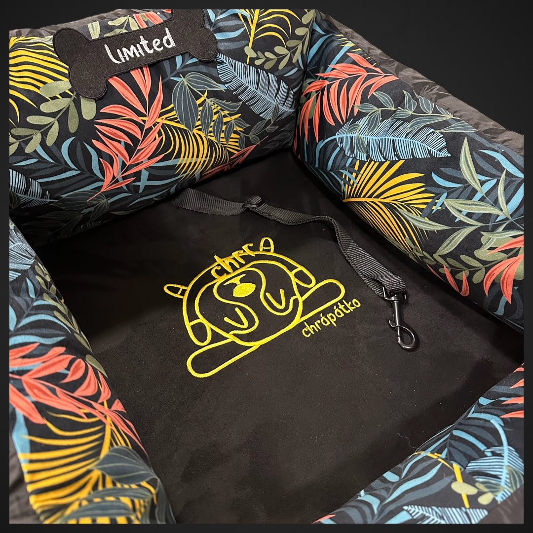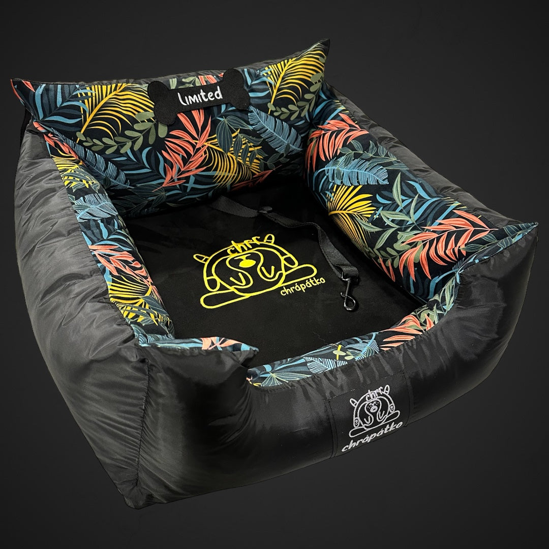 Premium car seat for dogs. Interior design made of very luxurious printed durable fabric.