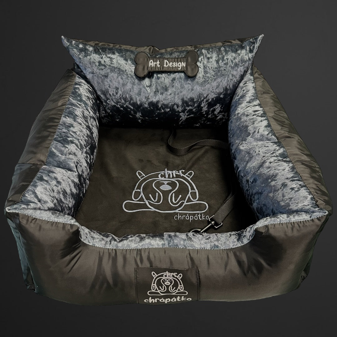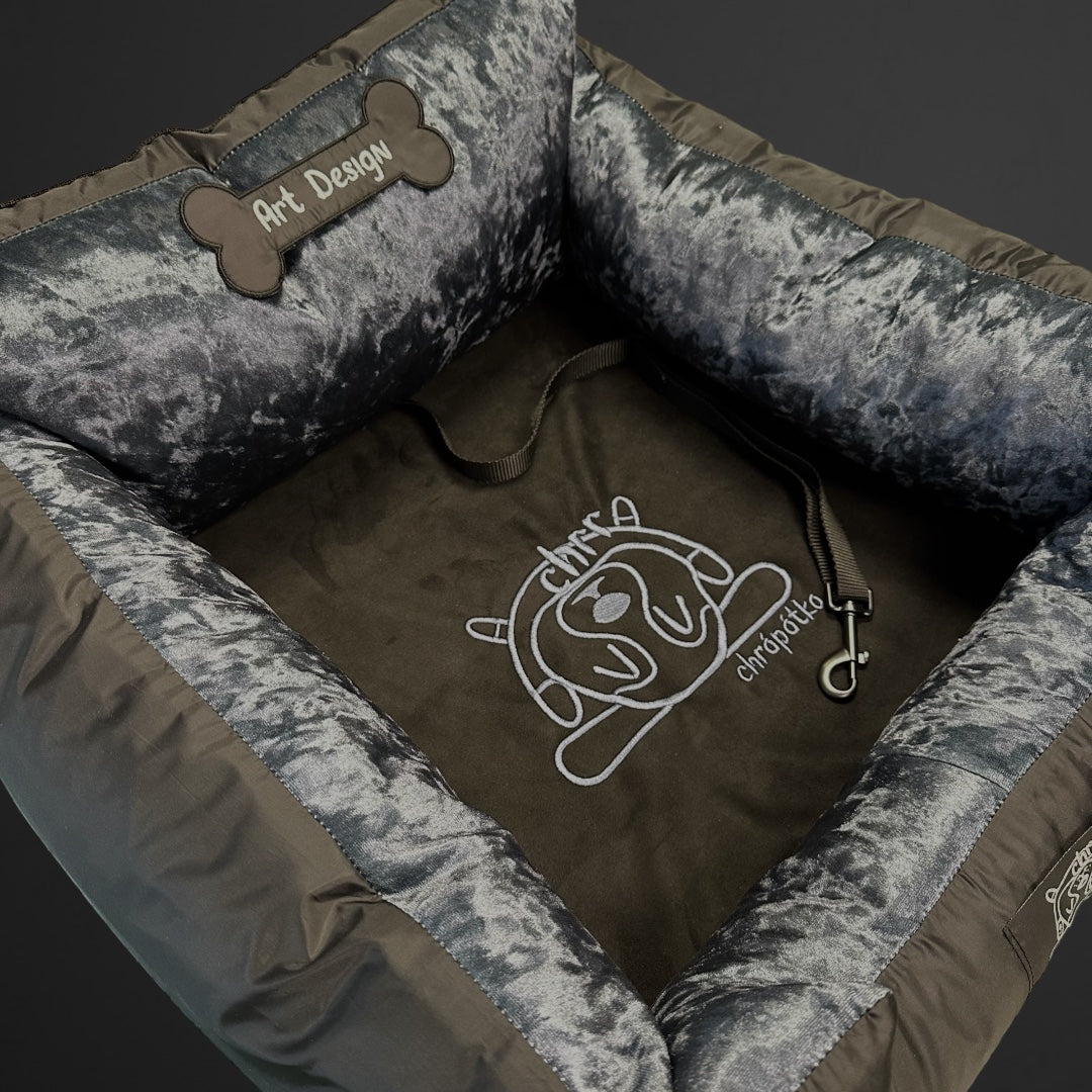 Premium car seat for dogs. Interior design made of very luxurious printed durable fabric.