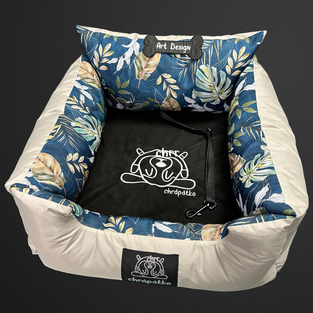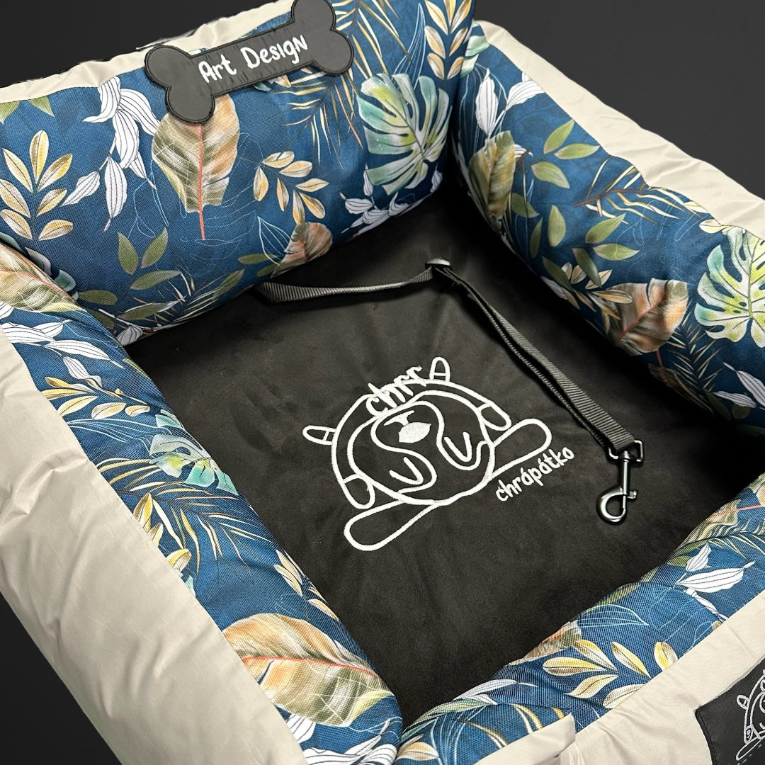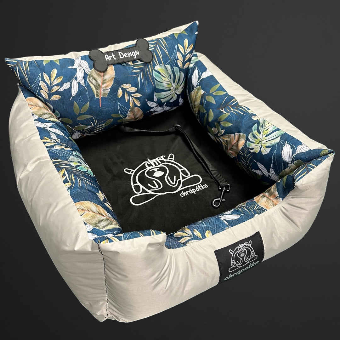 Premium car seat for dogs. Interior design made of printed, durable fabric.