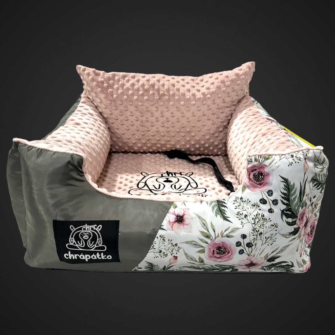Luxurious materials, premium embroidery on the mattress cover with the Snore Dog logo and a patch on the front bumper, along with proper padding, will literally make your dog snore!