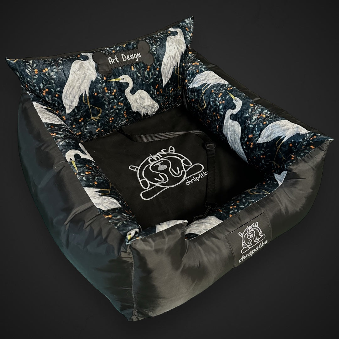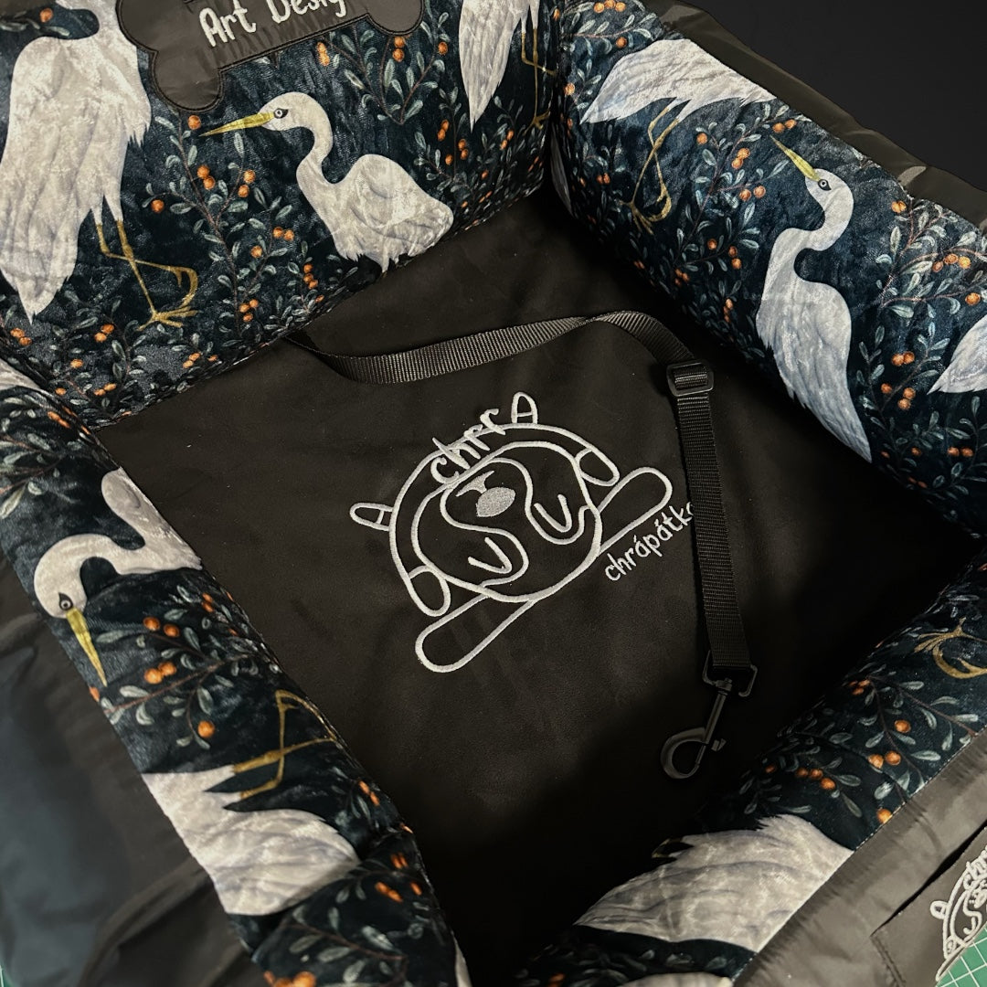 Premium car seat for dogs. Interior design made of very luxurious printed durable fabric.