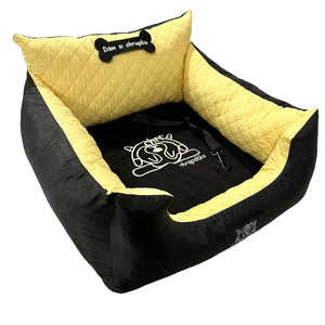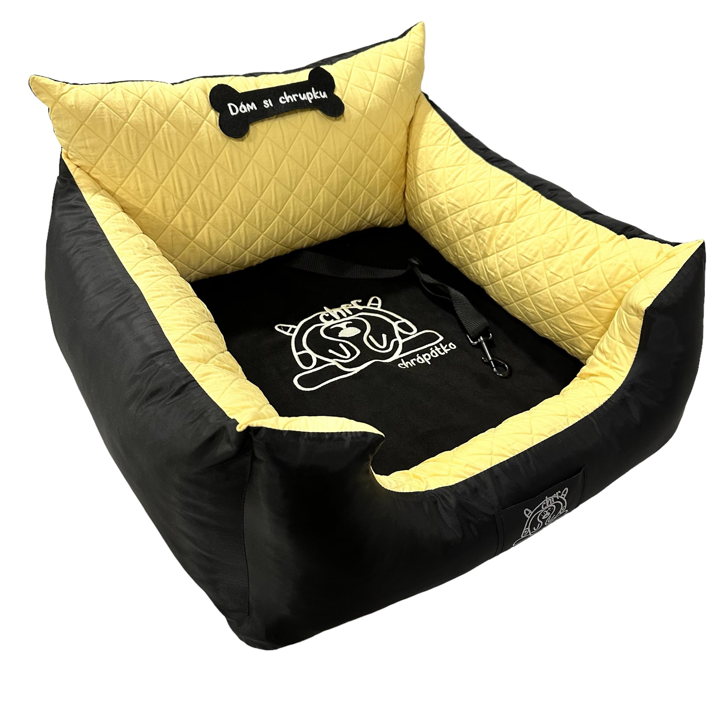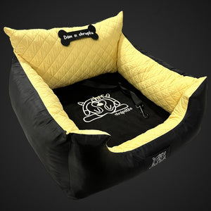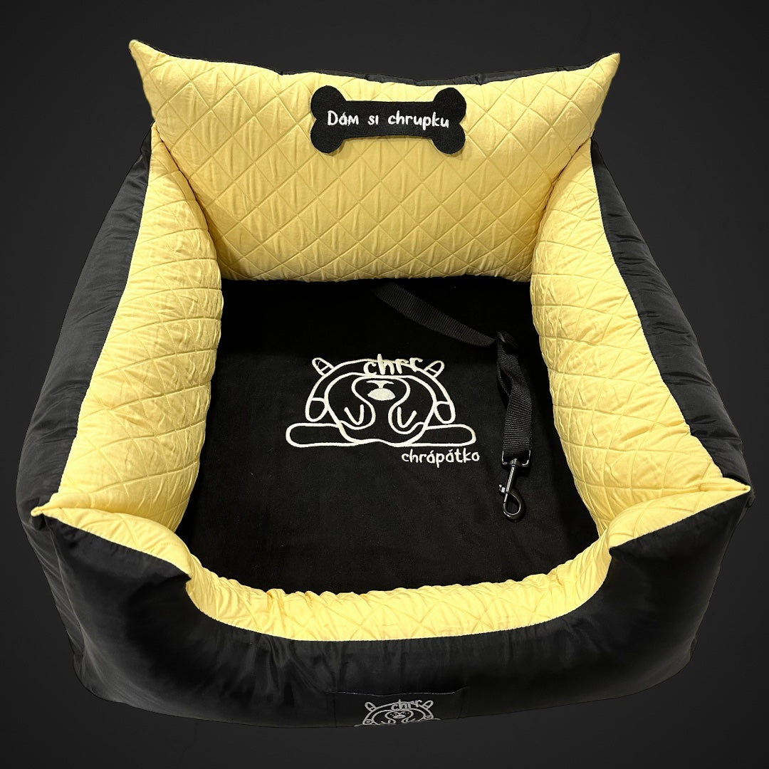 Premium car seat for dogs from the "Let's have some grit" design collection, DELUX edition, in a luxurious quilted coat.