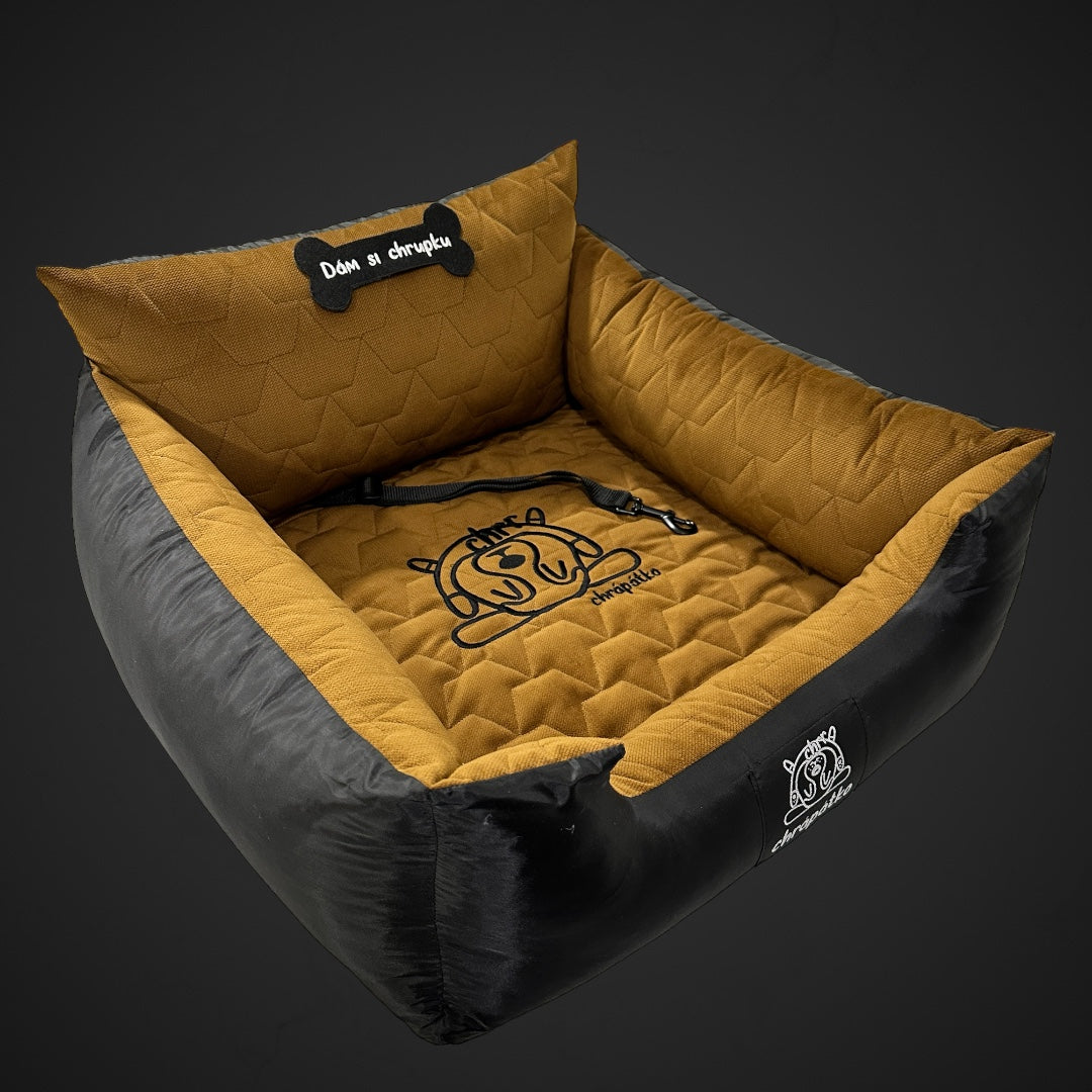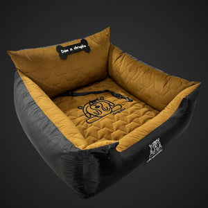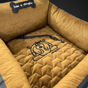 Premium car seat for dogs from the "Let's have some grit" design collection, Vuitton edition, in a luxurious quilted coat.
