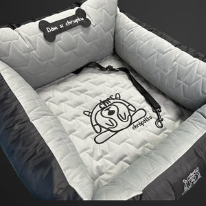 Premium car seat for dogs from the "Let's have some grit" design collection, Vuitton edition, in a luxurious quilted coat.