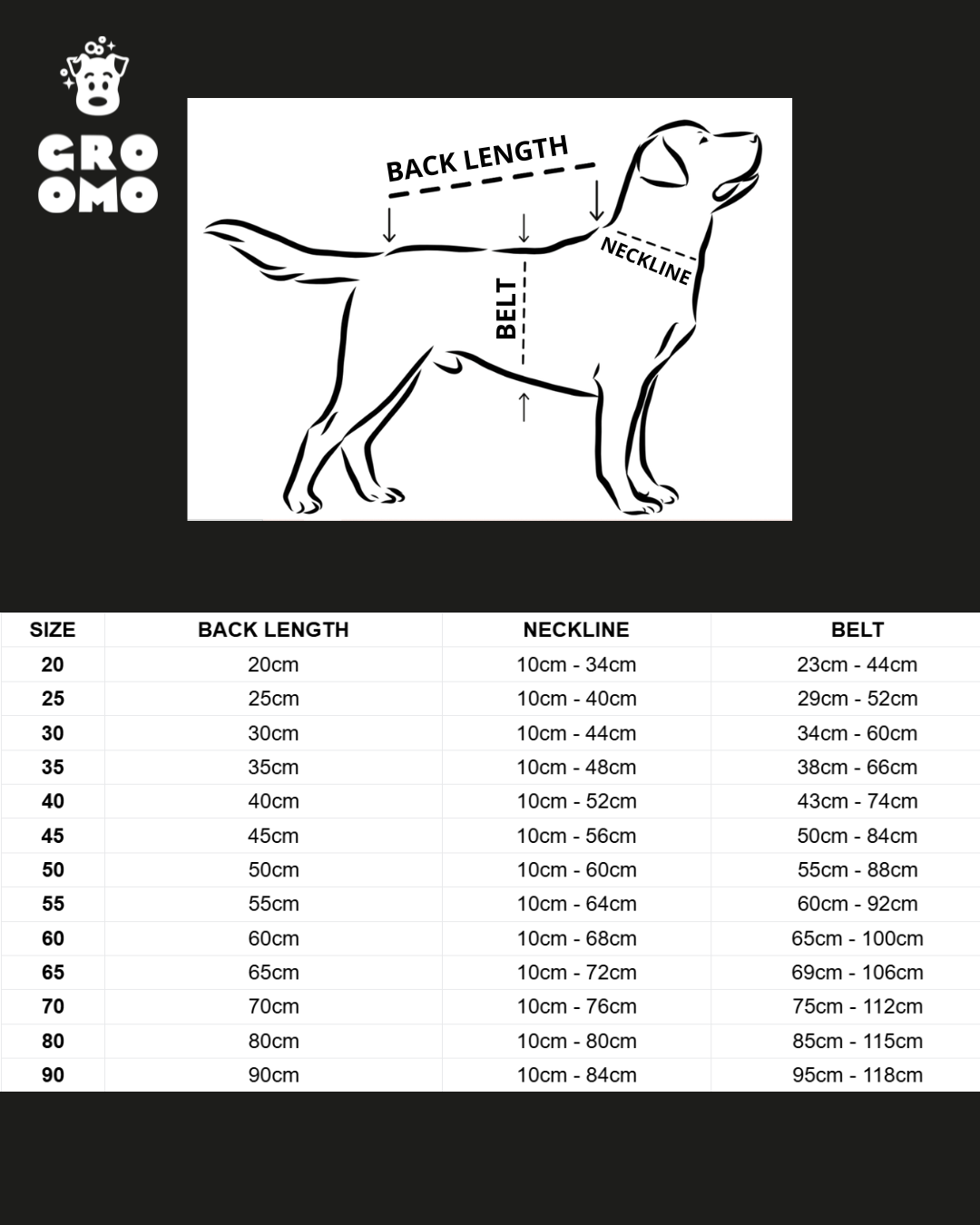 • Možnost individuálního nastavení v oblasti krku, pasu, délky zad i zadních popruhů umožňuje perfektní přizpůsobení každému psovi.