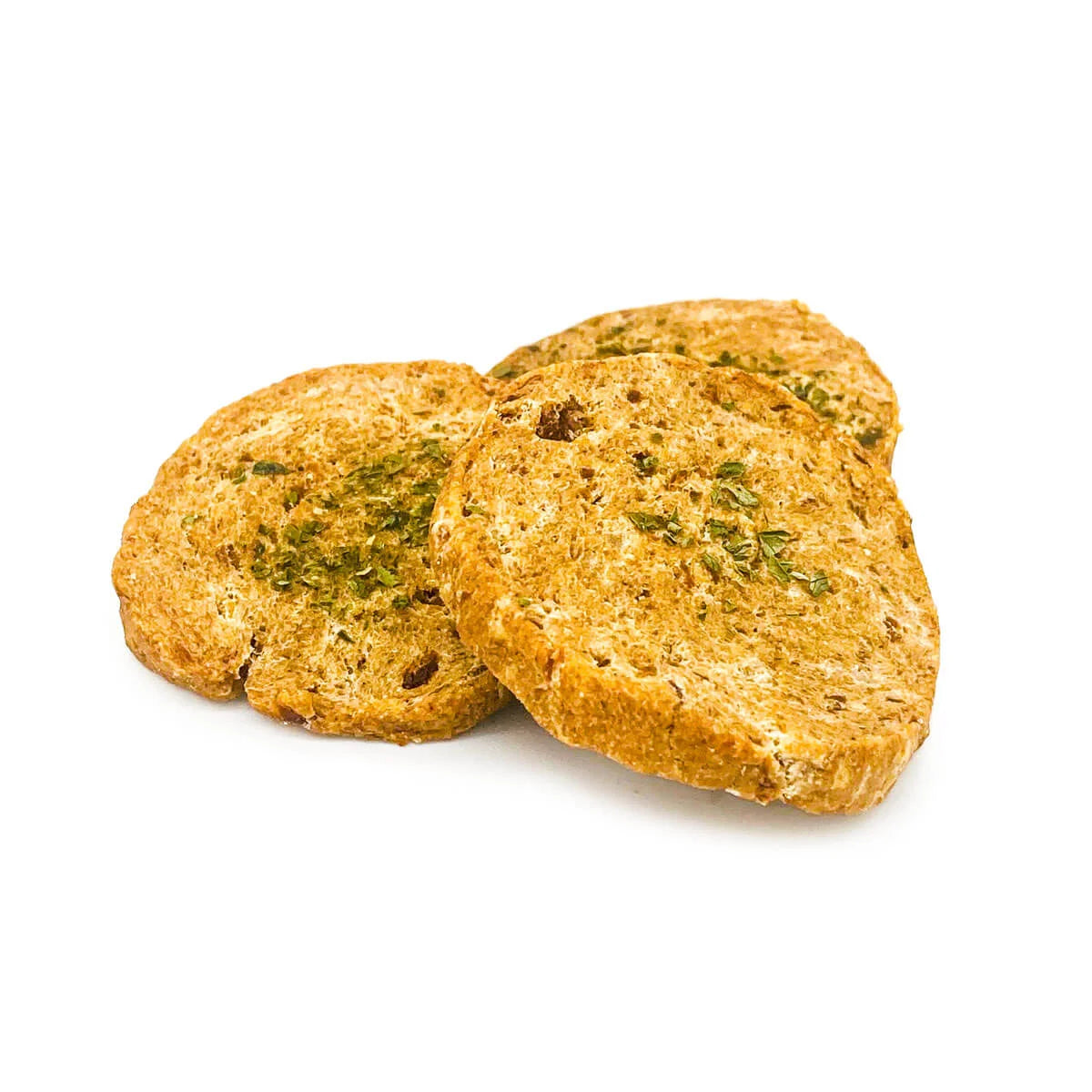 These cookies are the perfect treat for your dog! They're filled with quality pork and rye flour, and we've sprinkled them with fresh parsley to help freshen their breath.