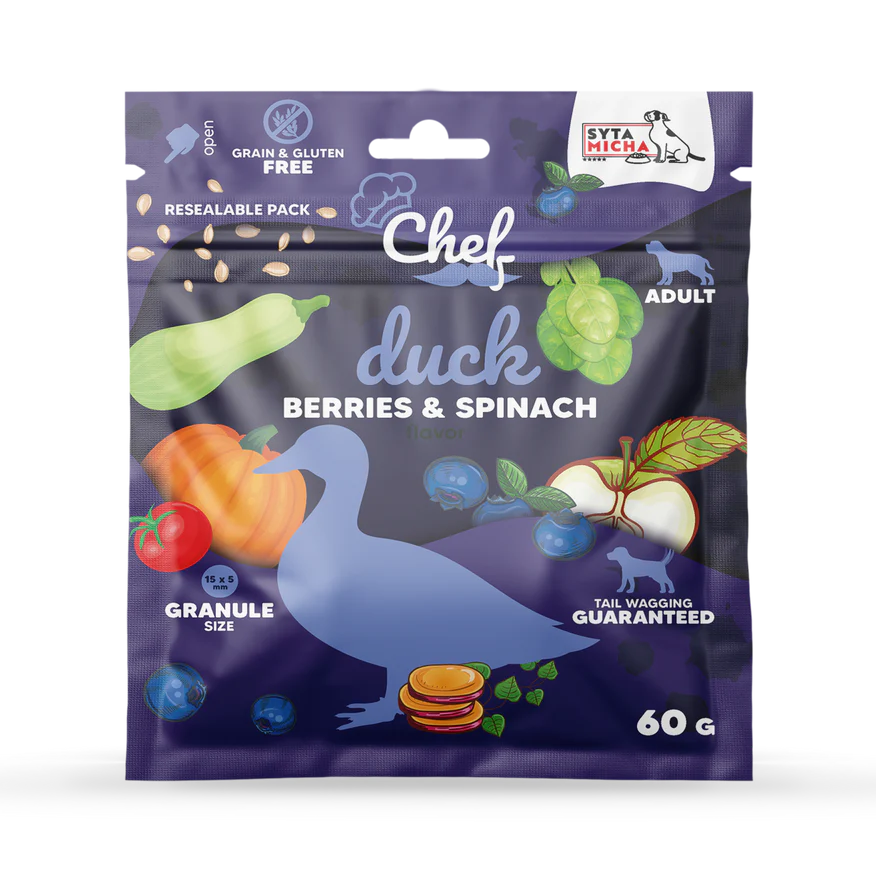 Dry dog food Syta Micha – Duck, blueberries and spinach