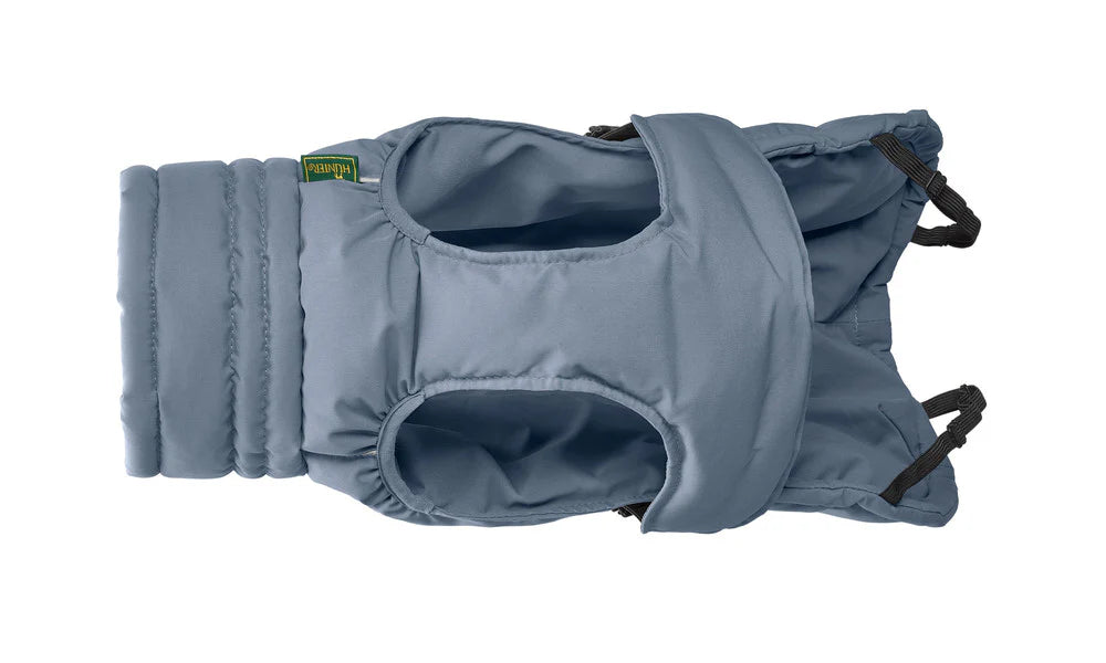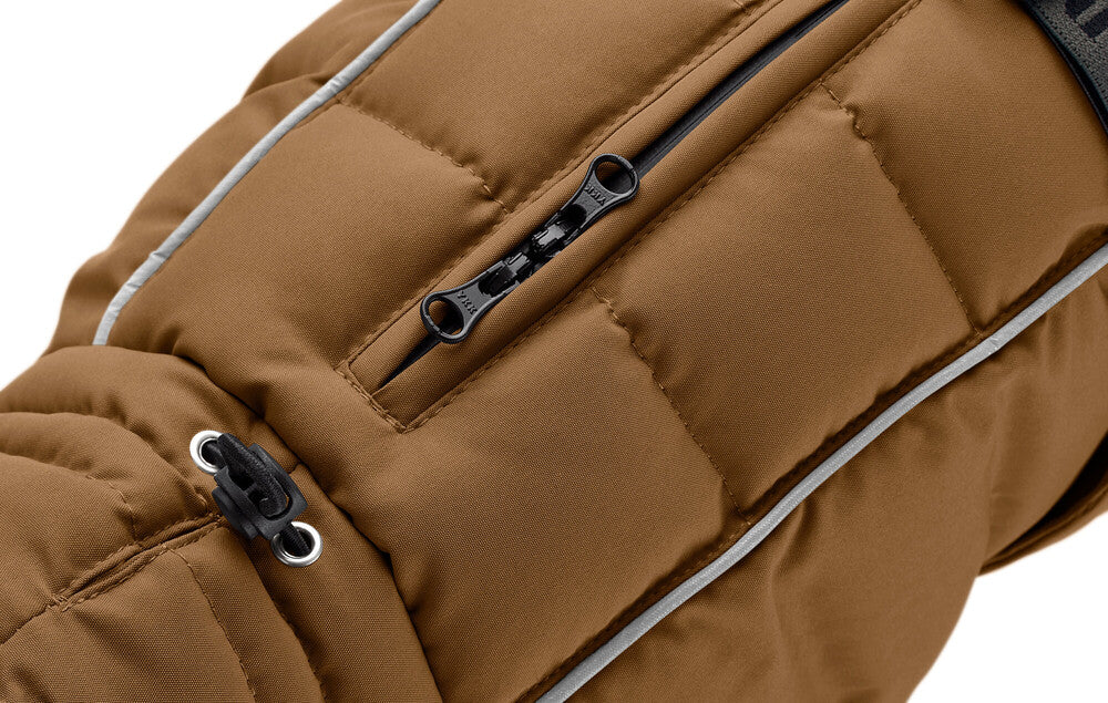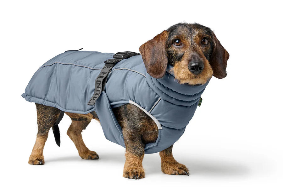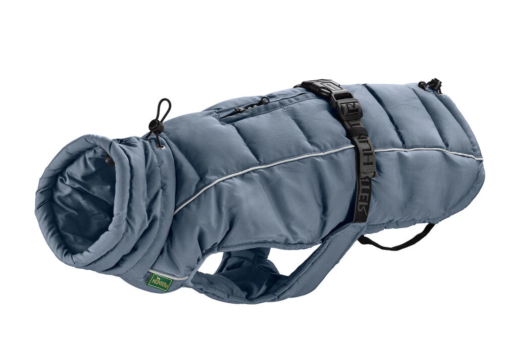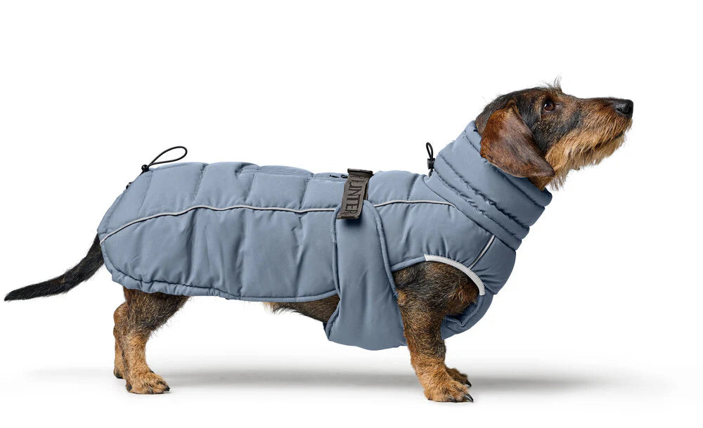 Kabátek je vyroben z nepromokavého materiálu a má měkkou, hřejivou výplň, která chrání psa i v mrazivém počasí. Vysoký nastavitelný límec a krytí břicha brání pronikání chladu a větru, zatímco reflexní prvky zajišťují lepší viditelnost ve tmě nebo za zhoršené viditelnosti.
