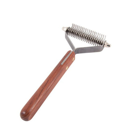 Ergonomická rukojeť z kvalitního dřeva dobře sedí v ruce a poskytuje vysoký komfort i při delším česání. Díky promyšlenému provedení je zátěž na klouby minimalizována a práce je rychlá, plynulá a účinná.
