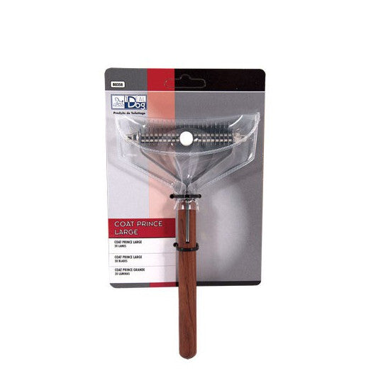 Profesionální hrablo Ideal Dog Coat Prince vybavené 20 velkými zuby je určeno pro úpravu srsti u velkých plemen s hustou a náročnou srstí. Konstrukce nástroje umožňuje efektivní odstranění uvolněné srsti i podsady bez zbytečné námahy.