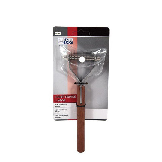 Profesionální hrablo Ideal Dog Coat Prince s osmi velkými zuby je určené především pro úpravu velmi husté a těžké srsti u velkých plemen. Konstrukce nástroje umožňuje účinné pročesávání i náročné srsti bez zbytečné zátěže pro ruku.