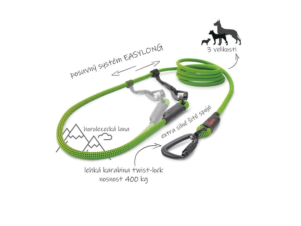 The handmade rope leash with an innovative sliding mechanism allows you to smoothly adjust the length as needed - just a light movement of your fingers is enough. This model is one of our top products and is now equipped with TWISTLOCK carabiners at both ends. Thanks to them, its use is even more versatile than the original EASYLONG version.