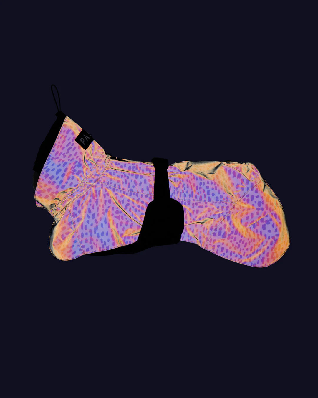 Kabát byl navržen s cílem zajistit psovi maximální komfort i bezpečí v jakémkoli počasí. Typický reflexní materiál PAIKKA spolu s funkcí Glow in the Dark zajišťují skvělou viditelnost i za snížených světelných podmínek. Plně nepromokavá tkanina s podlepenými hlavními švy spolehlivě chrání před deštěm, zatímco ultralehký materiál, ergonomický střih a široké možnosti nastavení přinášejí výjimečné pohodlí při nošení.