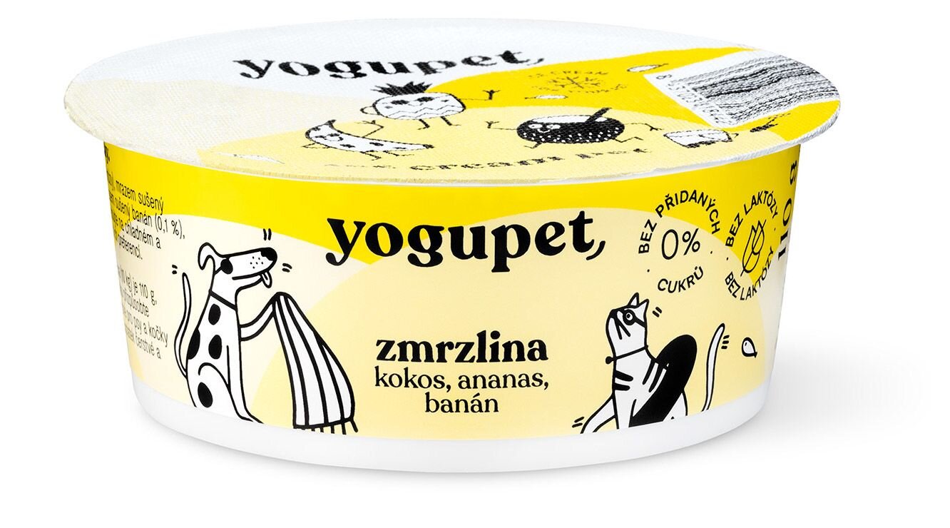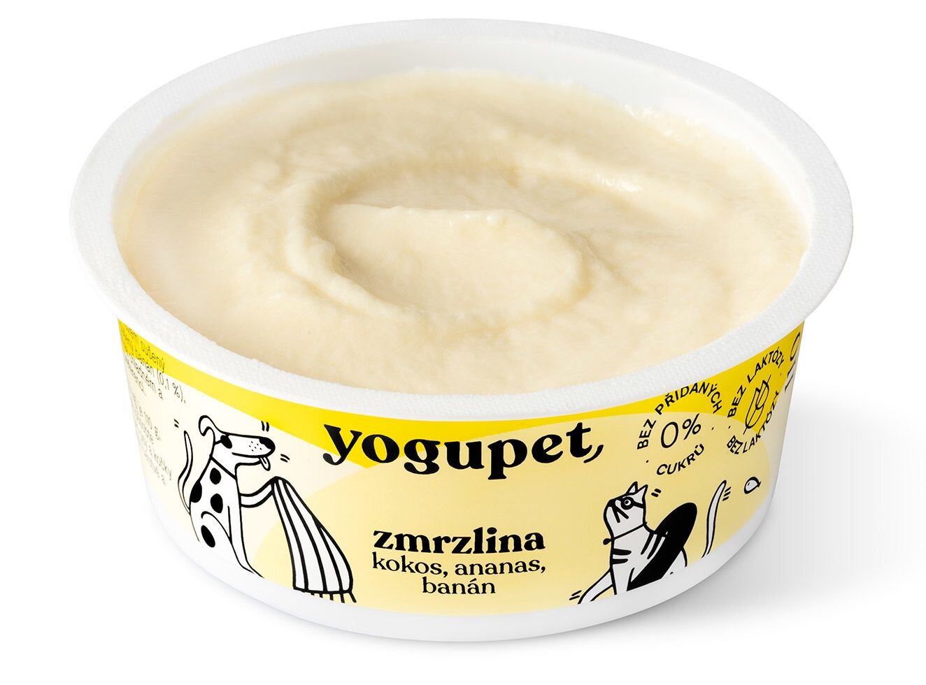 Jogurtová zmrzlina Yogupet je lahůdka, která udělá radost každému chlupatému mlsounovi. Vyvinutá speciálně pro potřeby psů a koček, potěší nejen chutí, ale i složením. Je vyrobena z pasterizovaného mléka bez laktózy a doplněná o přírodní ingredience v podobě mrazem sušeného ovoce - kokosu, ananasu a banánu.