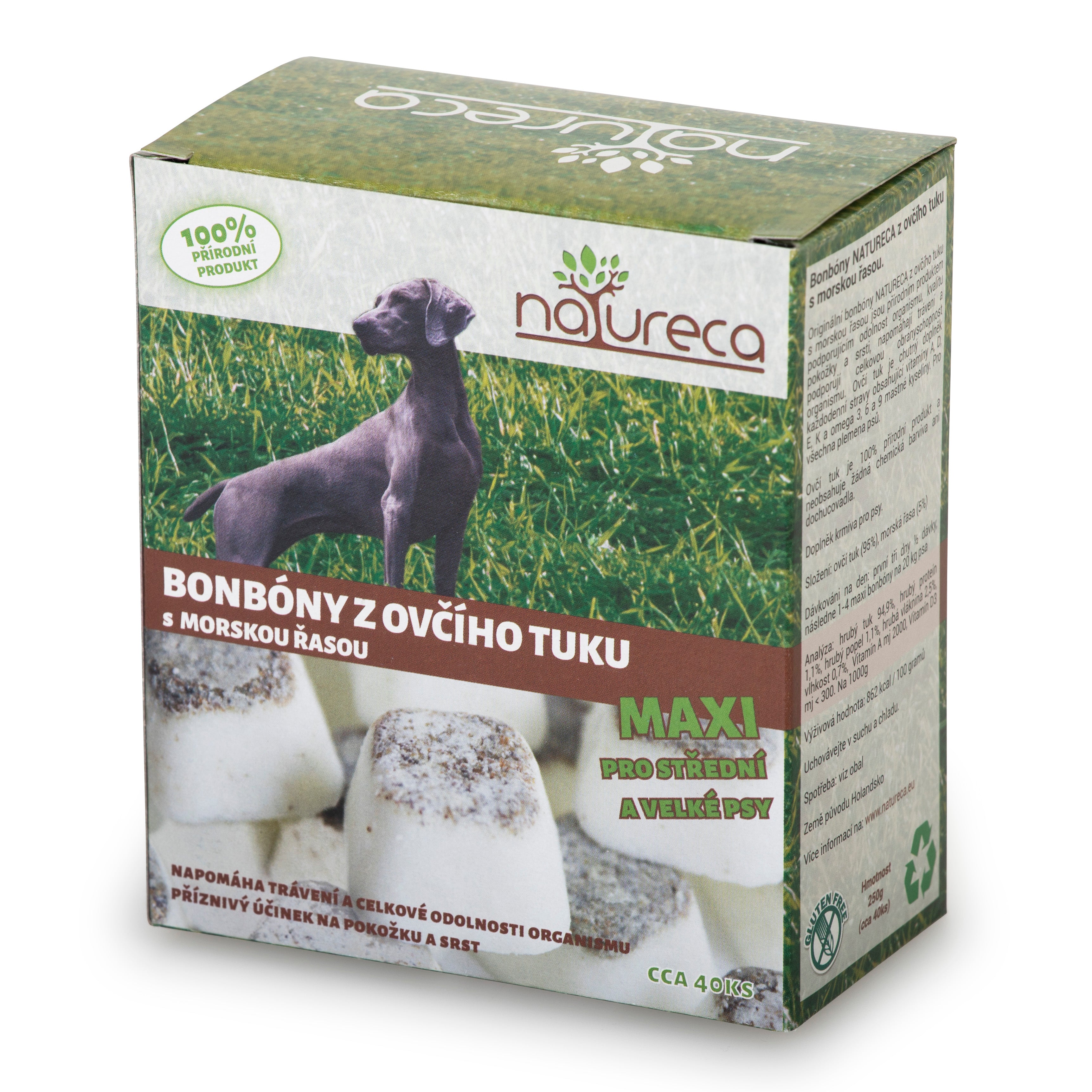 Výživový doplnok NATURECA s ovčím tukom a morskou riasou prináša psom viditeľné zlepšenie kondície – podporuje zdravú a hydratovanú pokožku, žiarivú srsť, silnú kostru, vyrovnané trávenie a celkovú vitalitu.
