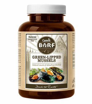 Canvit BARF Green-lipped Mussel je 100% prírodné chondroprotektívum obsahujúce extrakt z novozélandskej slávky zelenoústej (Perna canaliculus). Táto superpotravina je bohatým zdrojom glukosaminglykanov (GAG), ktoré sú kľúčové pre zdravie kĺbov, a nenasýtených mastných kyselín so silnými protizápalovými účinkami.