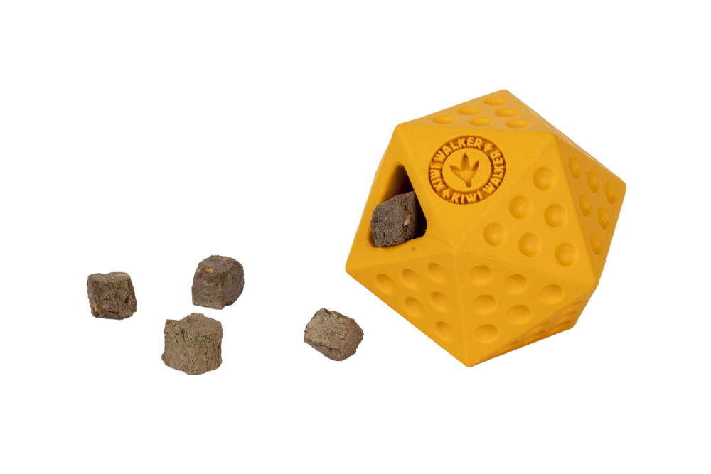 Pevná interaktivní hračka z kvalitní gumy, vhodná pro plnění mrazem sušenými pamlsky