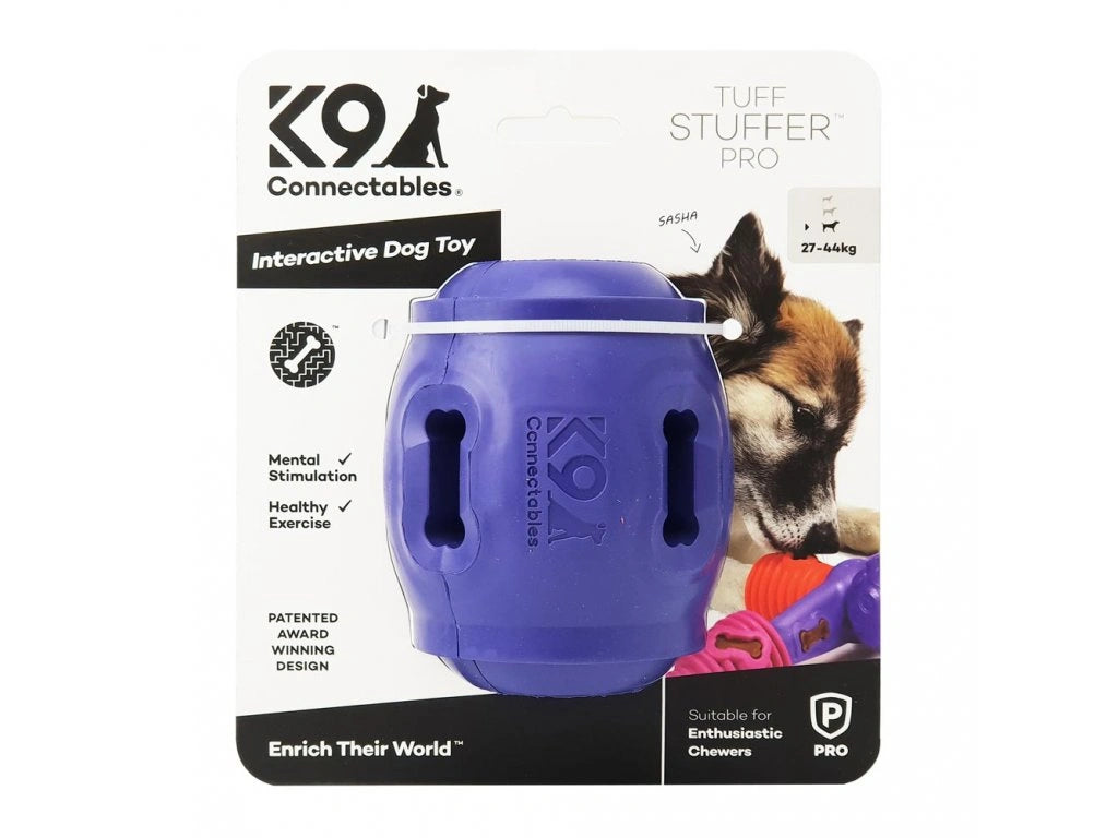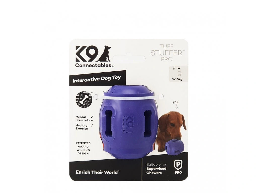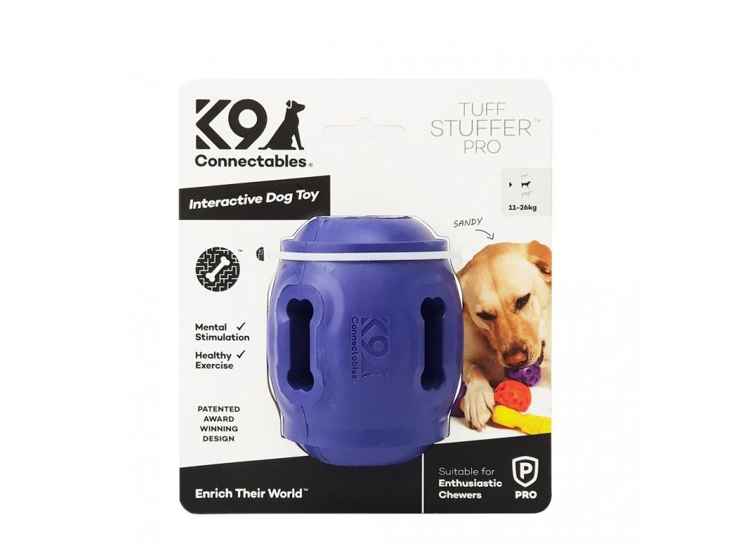 Je to skvelá voľba pre majiteľov psov, ktorí majú doma „ničiteľa“, pretože táto interaktívna hračka je navrhnutá tak, aby vydržala aj intenzívne hranie. Tuff Stuffer môžete naplniť maškrtami, granulami alebo napríklad mäsom, a pre ešte väčšiu výzvu je možné oba konce uzavrieť inou hračkou K9 Connectables® rovnakej veľkosti. Pes tak bude musieť vymyslieť, ako sa dostať k svojim pochúťkam tým, že odstráni uzáver. Výborne sa hodí ku kombinácii s Yes Bone a vďaka trom drážkam umožňuje nastaviť tri rôzne úrovne obtiažnosti pripevnenia ďalšej hračky.