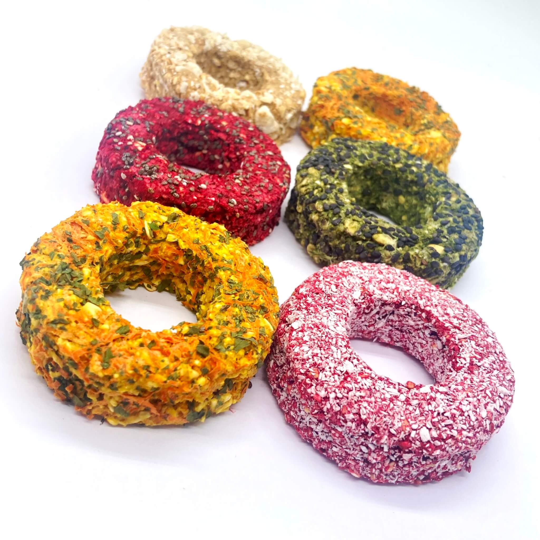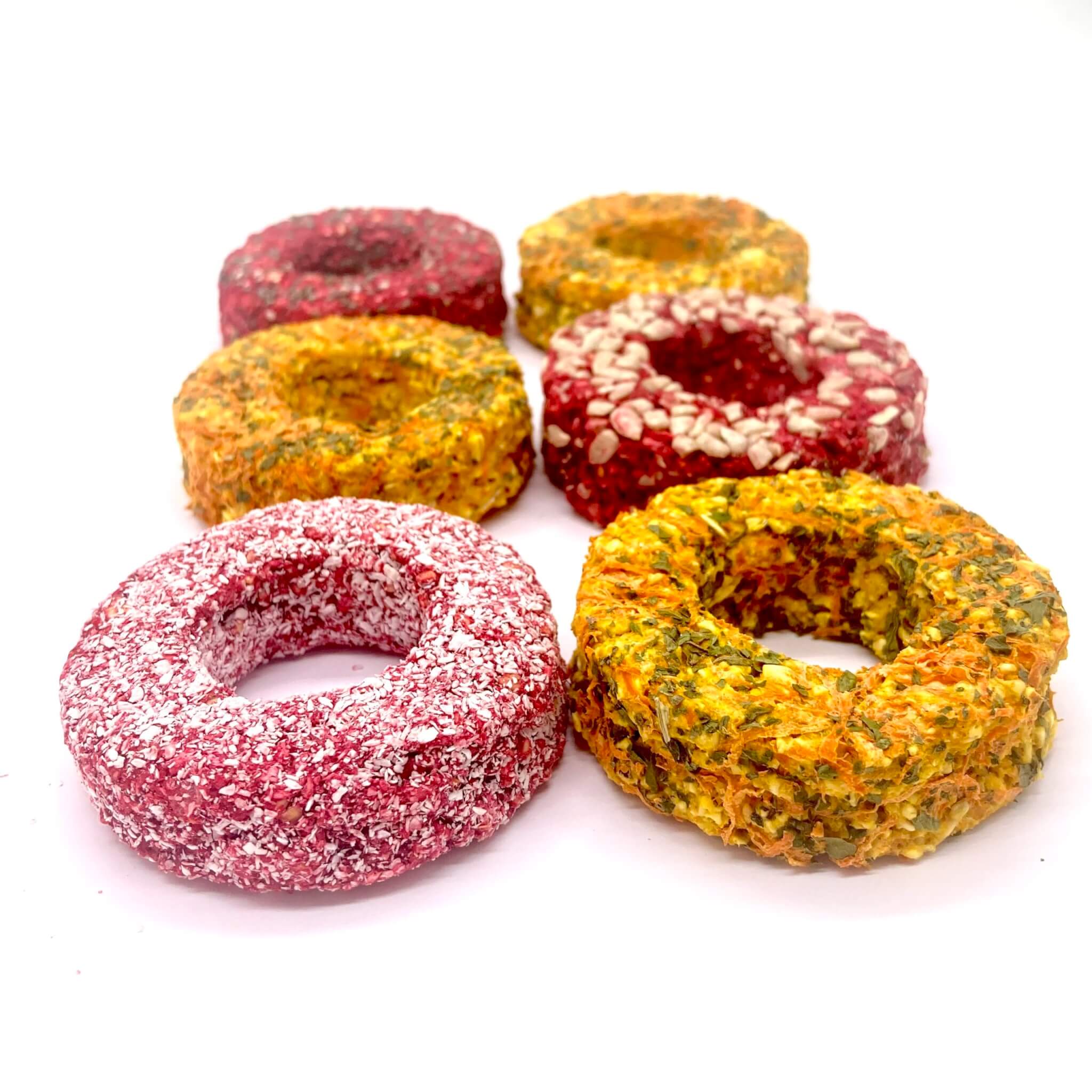 3.) 2 ks kuracie donuty, 2 ks hovädzie donuty s repou, 1 ks hovädzie donúti so špenátom, 1 ks banánový donut