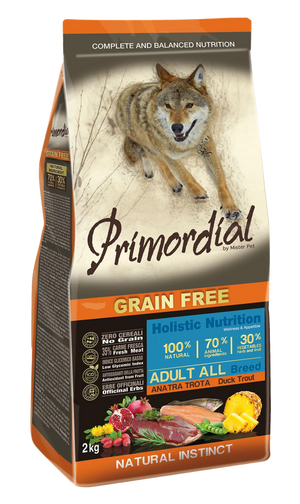 Primordial kachna a pstruh je kompletní superprémiové krmivo bez obilovin, které vyniká vysokou stravitelností a obsahem bílkovin s optimálním složením aminokyselin.