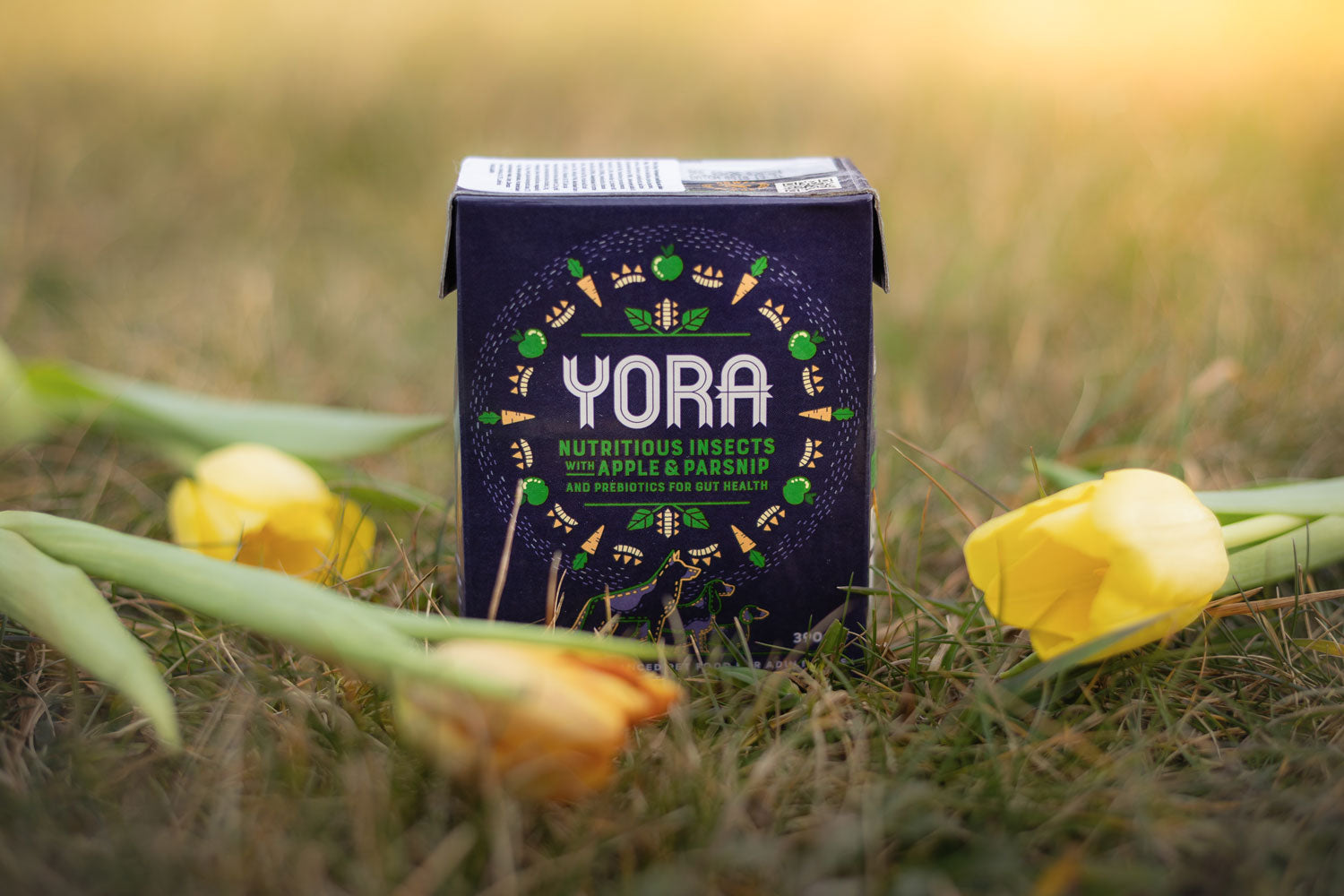 Gurmánska paštéta bohatá na hmyzí proteín, jablká, paštrnák a prebiotiká je kompletné vlhké krmivo Yora, ktoré vonia a chutí úplne skvele.