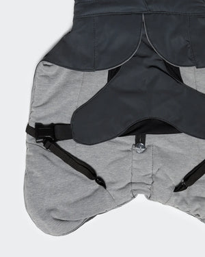 Široké možnosti nastavení – obvod krku, pasu, délka zad i popruhy na nohy – umožňují přesné přizpůsobení bez omezení pohybu.